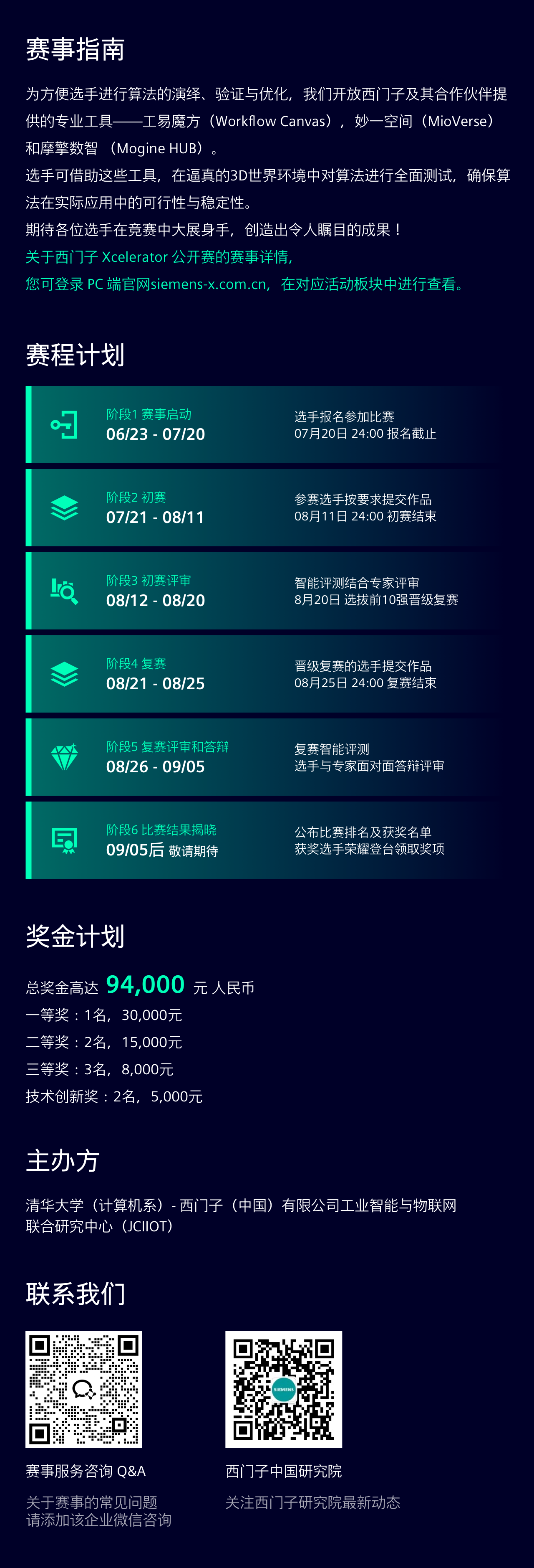 本竞赛道由“清华大学(计算机系)- 西门子(中国)有限公司工业智能与物联网联合研究中心”主办。本次比赛旨在鼓励开发者和创新机构运用工易魔方套件结合前沿人工智能技术,实现信息技术(IT)与运营技术(OT)的深度融合,打通虚拟世界与物理世界的边界,助力智能制造创新发展。本次竞赛聚焦于AGV车队路径规划问题,诚邀广大在校学生、技术爱好者与专业人士踊跃参与。参赛者需运用人工智能技术,编写AGV轨迹生成算法,以应对工业应用中多车协同作业、动态避障以及任务临时变更等复杂且极具挑战性的场景,高效完成货物分拣与运输任务。我们特别鼓励参赛选手发挥创新思维,将先进的LLM技术与求解器技术深度融合,探索出更具创新性、高效性的解决方案。为助力选手快速上手并开展研发工作,我们将提供一套完整的基准求解器代码作为参考。